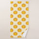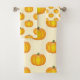 Esta toalla muestra el patrón de Destei de calabazas ilustradas personalizado en un color de fondo amarillo claro.
