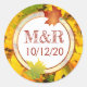 Pegatinas de bodas monogramadas de hojas de otoño personalizadas