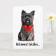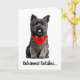 Cairn Terrier usa una tarjeta de compa de Navidade