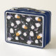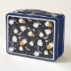 Caja de almuerzo con gafas negras y moradas ilustr