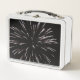 Una caja de almuerzo con una foto de fuegos artificiales.