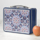 ¡Qué buena manera de llevar tu almuerzo! Esto es para el niño que ama cosas hermosas. O puedes usarlo para suministros escolares. Esta metalizado caja del almuerzo tiene un patrón geométrico con 2 formas de azul a partir de un patrón de mosaico. Viene de una baldosa original, del fabricante de azulejos de Oregón Fay Jones Day. ¡Vas a recibir tantos comentarios cuando lleves esta caja de almuerzo!