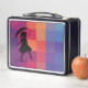 Añade algo de encanto al almuerzo con este divertido y colorido diseño de píxeles con la silueta de una chica y su paraguas. Un gran regalo para esa persona artística única en tu vida y un recordatorio para buscar arcos y bailar bajo la lluvia.