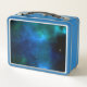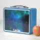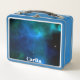 Una caja de almuerzo metalizado personalizado con fondo azul en ambos lados. Puede agregar su nombre a este elemento utilizando la plantilla personalizado.