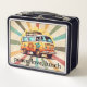 Esta adorable caja de almuerzo metalizado es perfecta para cualquier adulto o niño amante de la paz. La caja de almuerzo presenta un diseño de 60/70 con una camioneta hippy clásica que es tan retro, y se puede personalizar con cualquier nombre o texto. La lonja está hecha de metalizado de calidad. Cuenta con un asidero robusto para facilitar su transporte y un cierre ajustable para mantener la seguridad alimentaria.