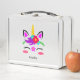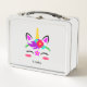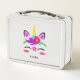 Un bonito unicornio colorido, adornado con colores brillantes y alegres, descansa sobre un fondo blanco. Perfecto para volver a la escuela o para hacer excursiones por carretera. ¡A tu niñita le encantará!