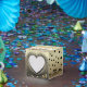 corazón de la caja y mariposas doradas alrededor de texto en la carta de la caja y lunares en los laterales con un poco de sombra en la parte inferior