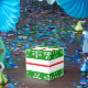 Caja de copos de nieve rojos y verdes