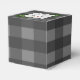 El regalo de paquete favorece esta temporada de vacaciones con una caja de Favor de Buffalo Gris de Snowman. El diseño de la caja de favoritos incluye una caja adornada con ramas de pino y un encantador muñeco de nieve sobre un fondo de manto de búfalo. También hay artículos de regalo y de vacaciones disponibles con este diseño.