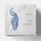 Personalice una caja de favores de boda única para los invitados con esta caja de favores de la boda pavo real azul. El diseño de la caja de favoritos presenta un pavo real elegante contra un delicado follaje y fondo de grunge. Personaliza con los nombres del novio y la novia junto con la fecha del boda. También hay material de boda adicional disponible con este diseño.