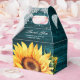 Pon tus regalos de novia/de boda en estas verde azuladas cajas rústicas de favores florales inspiradas en los girasoles.