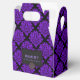 Damasco morado-Un elegante damasco morado oscuro y negro cubre toda la caja de favores. En la parte delantera de la caja hay una etiqueta decorativa con un adorno de fundición de damasco. Hay dos áreas de texto para que puedas personalizar. Actualmente, el texto dice: INVITADO y un poco de algo sólo para ti. Edite estas áreas para que se adapten a su ocasión. Si no desea que el texto simplemente ELIMINE las áreas de texto y la etiqueta, dejando sólo el fondo del damasco. Este diseño se coordina con los demás productos de la tienda titulada: Purple Pearl Damask. Se puede coordinar el suministro de fiesta de Zazzle.