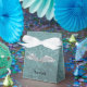 Amplio ilustracion de alas azul-grises. Fondo azul grueso. Texto personalizado.