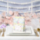 El diseño tiene un fondo amarillo pálido con elegantes cabezas de unicornio blanco con formas de flujo rosa, azul y amarillo pastel. Entre los elementos que lo rodean se encuentran las nubes onduladas con un contorno azul, las lunas de media luna y las estrellas dispersas en amarillo y rosa. Los unicornios tienen cuernos dorados y ojos expresivos, añadiendo un toque mágico. El patrón impecable crea una estética inspirada en el sueño y la fantasía.