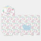 La decoración se compone de una elegante cabeza de unicornio, decorada con centelleantes y espumosos, decorada en tonos rosa, azul y amarillo. Alrededor del unicornio hay elementos decorativos, como corazones rosados, flores florecientes y hojas verdes, creando una estética de ensueño y capricho.