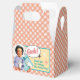 Caja de Favores para Despedida de Soltera Happy Retro Bride. Una feliz ama de casa vintage agradece a sus invitados por asistir a la despedida de soltera de una manera muy retro. Llene la caja con donas, bolsitas de té, bombas de baño, cualquier cosa que se le ocurra.
