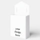 Estilo: Pequeña Caja de Favor de Tiendas con Cinta 3" x 1.5" x 3.25" Las cajas Favor son tan únicas como sus invitados. ¡Ideales para bodas, cumpleaños, eventos corporativos y más! Dimensiones: 3" w x 1,5" x 3,25" h Impresión a color completo en material de tarjetas de alta calidad Buques planos, un simple montaje requería la seguridad de contacto con alimentos. Se recomienda utilizar un revestimiento/barrera si desea evitar la tinción de información del Diseñador: para garantizar la impresión de máxima calidad, tenga en cuenta que este producto tiene varias áreas de diseño de personalizable. El área personalizable de la caja desplegada mide 8.44" x 6.84". Para obtener los mejores resultados, añade 1/7" de sangría.