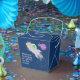 ¿El amor se va? Entonces te encantarán estas adorables cajas de bienvenida para tu próxima ducha de bebé con nuestro adorable diseño de bebé alienígena - ¡en ambos lados! Actualice el texto antes de colocarlo en su carrito de la compra. Presenta un bebé alienígena dentro de un cohete por un lado con un satélite y un planeta en el fondo, y un bebé alienígena sentado en lo alto de un planeta al revés.