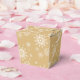 Esta caja de favores se muestra en una estampación de oro y copos de nieve blancos para Navidades festivos. Personalizar esta caja o compra como está. Imagen de stock