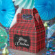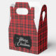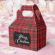 Una caja clásica y festiva de enlucido rojo y negro con una elegante cinta negra.