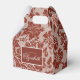Personalizado de damasco de cobre favorece las cajas. Esta hermosa colección de flores clásicas será perfecta para una celebración de jardín interior o exterior para un boda, una ducha de novia, una ducha de bebé o una celebración de estilo rústico. Toda la colección es personalizable. ¡Disfruten de su celebración, vítores!
