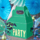 Esta caja de fiesta tropical presenta una rana de dardo con veneno verde