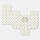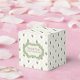 caja de regalo de bonito verde, marfil y blanco con un patrón de celosía, con flores de colores. Una placa decorativa verde y marfil, en la parte delantera de la caja, tiene un texto marrón oscuro personalizado listo para personalizar para leer lo que quieras.