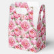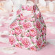 La caja de regalos para fiestas se muestra con una hermosa estampado floral de peonías rosadas.