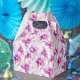 La caja de favor de fiesta se muestra con una hermosa impresión floral de orquídeas púrpuras.