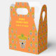 Esta impresionante caja de favores presenta una imagen de diseño gráfico de un cráneo inspirado en el Día de los Muertos de México. El cráneo es de color gris pálido y lleva un sombrero amarillo. Tiene dientes de oro y girasoles mexicanos, también llamados Tithonias< en lugar de ojos. El sombrero tiene un cactus encima y está cubierto por motivos de remolinos de bonito y pimientos de chile rojos y verdes. El cráneo está cubierto de flores de color bonito de diferentes tipos.