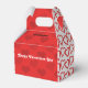 Perfecto para el Día de San Valentín. Este diseño tiene dos paneles en los lados con un fondo blanco con un patrón de corazones rojos y delineados. Los paneles frontal y posterior son rojos con un patrón de corazones rojos oscuros. En el panel frontal y posterior el texto dice: "Feliz Día de San Valentín". En la parte superior, del panel frontal, hay un área para texto adicional. Se puede personalizar todo el texto.