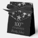 This elegant 100th Birthday Silver Stars Thank You favor box with shimmering silver faux glitter, the birthday girl's name in a trendy script font, and tied with an beautiful black bow would be perfect for your event. It would be great for a candy station, on a thank you gift table, or at each place setting with a favor. Be sure you order enough for all your guests.
