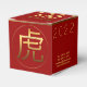 Símbolo del tigre dorado con un efecto digital grabado en relieve sobre fondo transparente. Diseño en caja de favores cubo con fondo rojo oscuro + 2022 + AÑO NUEVO FELIZ + nombre de negocio y dirección. Puede cambiar fácilmente el texto (fuente, color, tamaño y posición), el color de fondo y el tamaño del diseño haciendo clic en el botón personalizar. Disponible en otros tipos de cuadro de favor. Productos artesanales, tarjetas de felicitación, productos de teléfono y más... Perfecto para el Año Nuevo Chino del Tigre 2022 o cumpleaños (personas nacidas en el año Tigre). — "El tigre (寅) es uno de los ciclos de 12 años de animales que aparecen en el zodiaco chino relacionado con el calendario chino. El Año del Tigre está asociado con el símbolo de la rama terrestre 寅. (...) Se puede decir que las personas nacidas dentro de estos límites de fechas han nacido en el "Año del Tigre", aunque también llevan la siguiente señal elemental: 13 de febrero de 1926 - 1º de febrero de 1927 = Tigre de fuego, 31 de enero de 1938 - 18 de febrero de 1939 = Tigre de la Tierra Tigre Metalizado, 5 de febrero de 1962 - 24 de enero de 1963 = Tigre de agua, 23 de enero de 1974 - 10 de febrero de 1975 = Tigre de madera, 9 de febrero de 1986 - 28 de enero de 1987 = Tigre de fuego, 28 8 de enero de 1998 a 15 de febrero de 1999 = Tigre de la Tierra, 14 de febrero de 2010 a 2 de febrero de 2011 = Tigre Metalizado, 1 de febrero de 2022 a 21 de enero de 2023 = Tigre de agua, 19 de febrero de 2034 a 7 de febrero de 25 Tigre de madera (...) Wikipedia