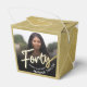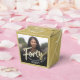 Forty gold script and gold look two sided photo party favor boxes. Personalize this 40th birthday party script photo favor box with your own birthday girls name and photo of your birthday girl or boy. Other years and matching items are available and can be created by request. © Original design by Sarah Trett for www.mylittleeden.com on Zazzle.