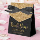 Esta fabulosa y moderna caja de favores 50th Birthday Gold Purpurina Black Gracias con brillante purpurina de oro, Gracias en un moderno guion y el nombre del chica de cumpleaños en oro con un elegante arco negro sería perfecto para tu evento. Sería estupendo para una estación de caramelos, en una mesa de regalo de agradecimiento o en cada lugar con un favor. Asegúrate de pedir lo suficiente para todos tus invitados.