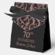 This elegant 70th Birthday Rose Gold Swirls Thank You favor box with shimmering rose gold faux glitter, the birthday girl's name in a trendy script font, and tied with an beautiful black bow would be perfect for your event. It would be great for a candy station, on a thank you gift table, or at each place setting with a favor. Be sure you order enough for all your guests.