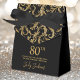 This elegant 80th Birthday Gold Swirls Thank You favor box with shimmering gold faux glitter, the birthday girl's name in a trendy script font, and tied with an beautiful black bow would be perfect for your event. It would be great for a candy station, on a thank you gift table, or at each place setting with a favor. Be sure you order enough for all your guests.