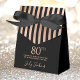 This elegant 80th Birthday Rose Gold Striped Thank You favor box with shimmering rose gold faux foil, the birthday girl's name in a trendy script font, and tied with an elegant black bow would be perfect for your event. It would be great for a candy station, on a thank you gift table, or at each place setting with a favor. Be sure you order enough for all your guests.