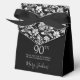 This elegant 90th Birthday Silver Floral Thank You favor box with shimmering silver faux foil, the birthday girl's name in a trendy script font, and tied with an elegant black bow would be perfect for your event. It would be great for a candy station, on a thank you gift table, or at each place setting with a favor. Be sure you order enough for all your guests.