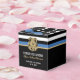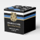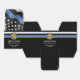 Este diseño incluye una bandera de la fuerza policial con rayas blancas y negras, y una delgada franja azul. Una gran manera de felicitar al nuevo graduado de la academia de policía y darles las gracias a los invitados fiestas. Personalizar con el nombre del oficial encargado de la aplicación de la ley graduado en oro. ¡Celebra este hito con estilo!