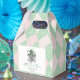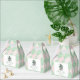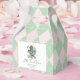 Estas lindas cajas de regalo de "Lucky Little Gracias" femeninas cuentan con un carrito de bebé victoriano irlandés de moda, adornado con un shamrock y suaves tonos verdes, todo en contra de un adorable patrón de estilo de argyle rosa y verde. Personalice con detalles del evento. Impreso delante y atrás. Estas cajas de regalo son de la colección de duchas para bebés "A Lucky Little Shamrock".