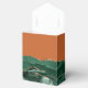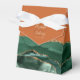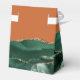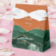 This elegant modern favor box features an emerald green watercolor agate design trimmed with gold faux glitter. Personalize it with the names of the bride and groom in gold-colored handwriting script over a large ampersand on a burnt orange or rust background, along with the wedding date below.