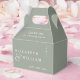 Esta caja de regalo de boda minimalista con monograma verde salvia puede ser personalizada con su información en tipografía moderna. Diseñado por Thisisnotme©