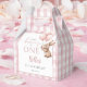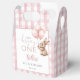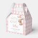Estas encantadoras cajas de regalos para la fiesta del primer cumpleaños presentan un conejo lindo sosteniendo globos y un fondo de gingham rosa. Diseñado por Thisisnotme©