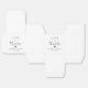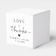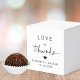 Caja de favores matrimoniales de moda con "Amor + Gracias" en tipografía simple y un guión moderno y elegante, y sus nombres y fecha boda.