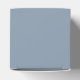 Moda polvorienta caja de favores de boda azul que presenta "amor + gracias" en una simple tipografía blanca y un elegante guión blanco con toques, tus primeros nombres unidos por un corazón y tu fecha boda.