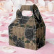 Cajas favoritas con rosas negras góticas vintage con fondo de arlequín de cobre grunge.