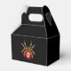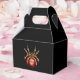 Araña mecánica, de vapor punk con oro, engranajes de latón y una lámpara de vidrio roja sobre un fondo negro. Estilo Steampunk.