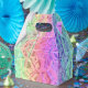 Facetas de gema cristalizadas en un gradiente arcoiris audaz.