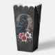 Majestuoso cuervo negro sentado orgullosamente en medio de un exuberante grupo de flores delicadas. El cuervo, con su pico puntiagudo y su ojo rojo penetrante, exuda una aura misteriosa. Sus plumas están meticulosamente detalladas en un estilo realista, destacando la textura y el brillo de su plumaje. A su alrededor se despliega una combinación armoniosa de delicadas flores en tonos suaves rosa y blanco. Los pétalos de las flores son suaves y delicados, casi parecen susurrar en la luz suave. Esta composición contrastante entre el cuervo poderoso y las flores frágiles crea un fascinante equilibrio entre fuerza y gracia,